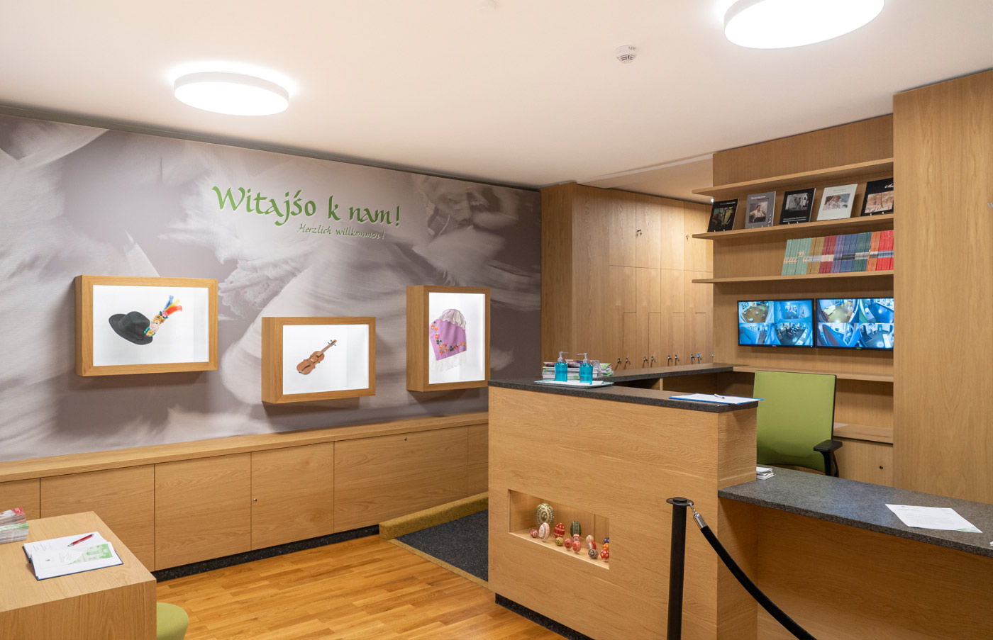 Wót nazymy lěta 2020 prezentěrujo Serbski muzej swóju nowu trajnu wustajeńcu wó kulturnych stawiznach Serbow w Dolnej Łužycy. Wóna dajo wjelerake doglědy do serbskego žywjenja něga a źinsa. Wótměnujuce muzejowe wobchójźenje z drogotnymi originalami, z wjelkeju procu naźěłanymi replikami a wšakorakimi medialnymi pórucenjami, pósrědnijo wjele zajmnego k temam wěra a nabóžnina, rěc a literatura, nałogi a narodne drastwy, muzika a jawišćowe wuměłstwo, ale teke wó industrializaciji a pśewrośenju kaž teke wobgrozenju a tšuśu domownje a identity.